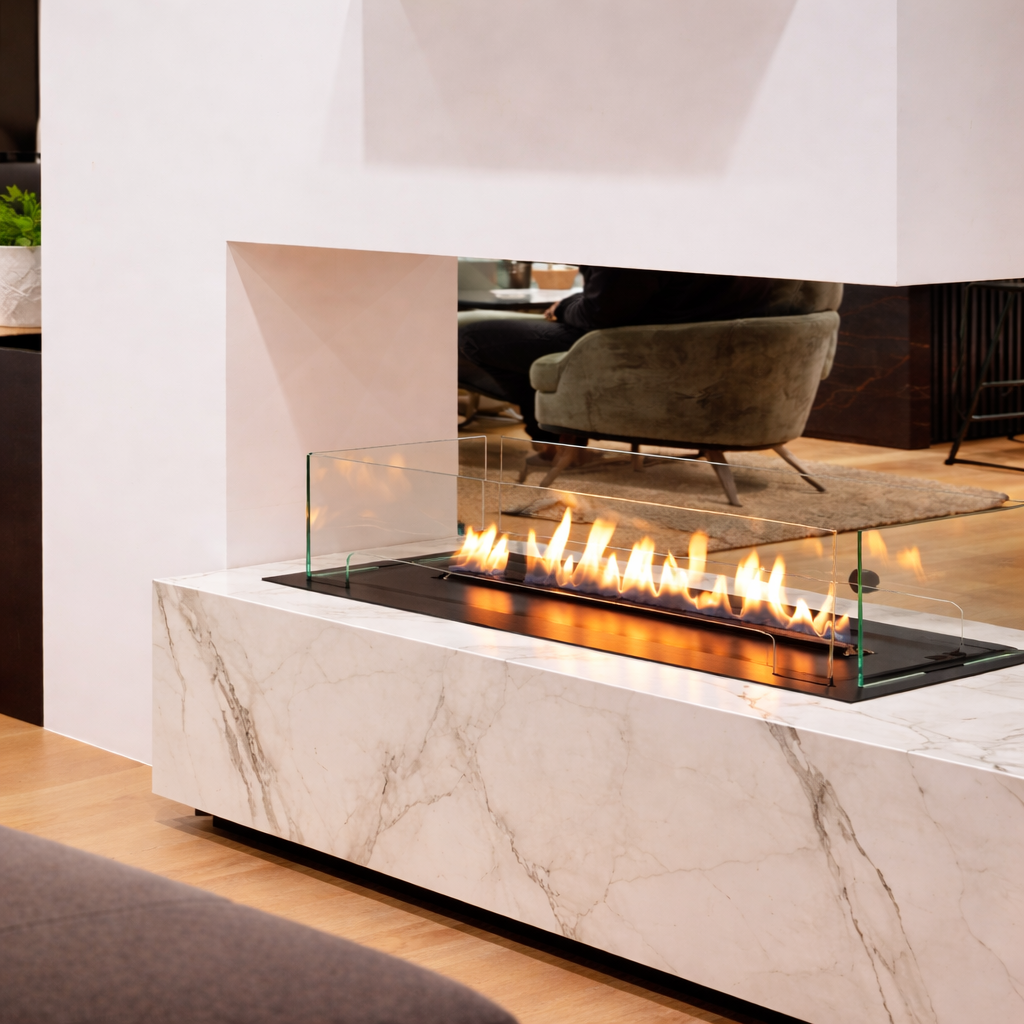 Non serve una canna fumaria: questo apre possibilità nuove in ambienti dove un camino tradizionale non è previsto, o dove si desidera un intervento più leggero. Il bioetanolo diventa così una scelta d’arredo, pensata per dare carattere allo spazio con naturalezza.